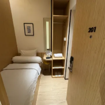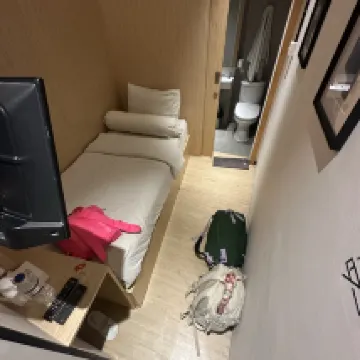 A clean and comfortable room, definitely only suited for one person with minimal baggage. Probably not the best for light sleepers as the door/walls were not too soundproof. The staff were friendly and helpful and the hotel is located close to lots of attractions. I would use this hotel again for short stays.