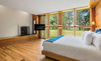 My husband and I had a wonderful 7-day stay at the Inn — easily the best decision of our trip. The room had a cozy scent of burned wood, beautiful views of the lake, and thoughtful daily cleaning with quality toiletries and bottled water in the fridge. The bed and closet were a bit small for two, and there were some bugs on the exterior windows, but that’s to be expected when surrounded by nature.