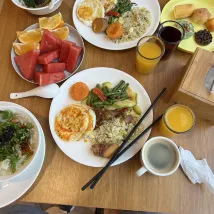 We enjoyed staying in this hotel. It’s very normal hotel but in the middle of local neighborhoods with massive food services in surroundings. Breakfast was fine, everyday same buffet. Staff at the kitchen are very good. Receptions unable to communicate any in English.