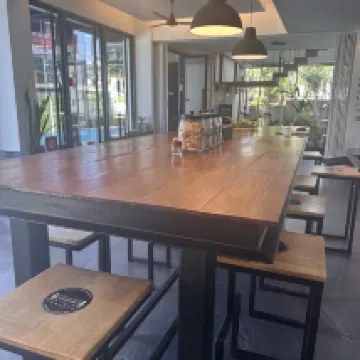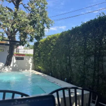 Environment: The tables by the pool are very comfortable for relaxing or working. The small courtyard is very cool.