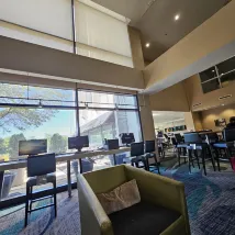 A comfortable hotel with complimentary breakfast and airport shuttle service. Friendly staff and fast free wifi throughout the hotel.