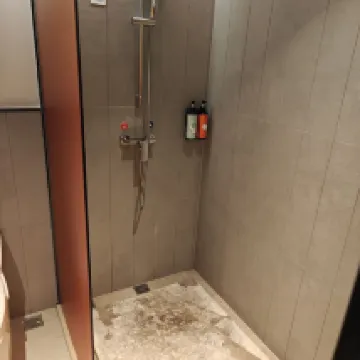 - There’s no door between the toilet and the shower so the toilet area is very wet after a shower