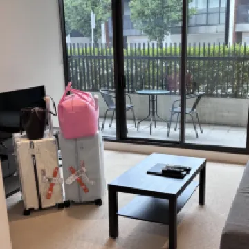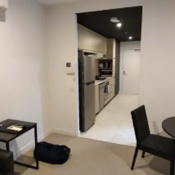 Awesome location- close to office. Great team - only a bit frustrated was twice during reception time in morning, there should be someone there, he was not. First, in the morning at 8am but reception was not yet opened and had to wait for the person to arrive 15-20 mins, I called the number on the desk but it couldn’t go through and I was late for my next appointment. Others were waiting too. 2nd time, 10am I wanted to get my car park remote, waited another 15-20mins. Phone was not working as well. I was running late for my next appointment, and as I closed the lift door, I heard some voices. Went back there, and he was there. If the phone was working, great but both time when I really needed the team, they were not there. Reception team - Brian and Sarah was excellent for my pre-arrival questions/booking via both phone and email. Parking arrangements was awesome. Basement parking and lift goes up to your floor level. Corridor smells stale like student accommodation I used to live in from people cooking. Cleanliness was great. There’s mark on the walls and etc.. just like a student accommodation but for the price I am paying, I’m happy. Pets are allowed apparently as I saw dogs on reception area and heard from my balcony. The wall are sound proof so it’s awesome, thank goodness. I will still come back next time for location, service, convenience and it perfect for a short stay for my work. Internet, table to work, washing machine + dryer, u can cook if you like, just perfect for me. I’m out most of the time, so only back home to sleep. It’s perfect. I had park view but the blinds were see through. I can see out, hopefully ppl can’t see in and was conscious about that.