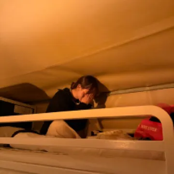 Clean, unique indoor camping style, comfy bed with its own charging socket and light. Fresh bed linen, large lockers, plenty of toilets and showers with hot water. Large common/dining area, 24/7 reception next to bar area which also sells food, coffee etc. Lovely outdoor roof terrace. Near bus, Metro & train transport to all areas of the city and beyond - good links to Central Station and airport. My only criticism is that it doesn't have a kitchen for guests to cook their own food in - however, they do allow you to buy food from the plentiful nearby street food vendors & supermarkets and they do have power sockets in the common area if you have a travel kettle or similar. Would recommend this hostel and stay there again myself. Copenhagen is a beautiful city, very walkable, clean & interesting.