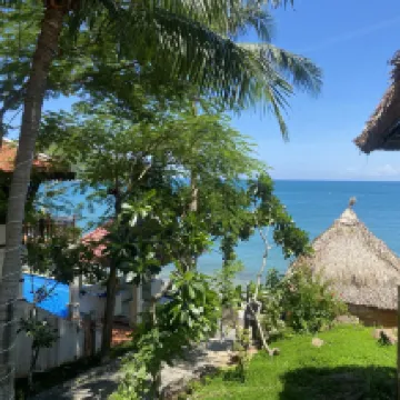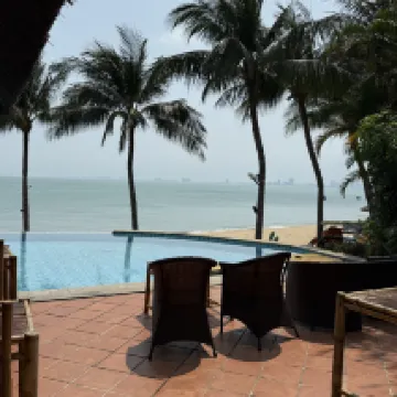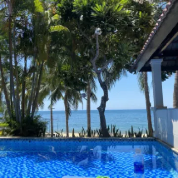 A small resort with its own beach far from the city. A great place to relax and unwind. The clean private pool is a big plus. The menu is very limited, but you can always order delivery.