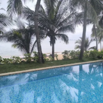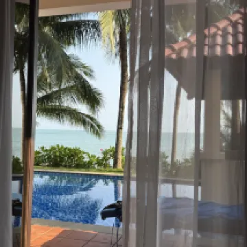 We booked 4 nights. Villa 206 was in good condition. The pool was clean. There was a nice private beach. The sea water was a bit cool due to its depth, unlike in central Da Nang, where it was warm, even hot in places. Masks weren't needed, and there was absolutely no snorkeling, despite the rocks. Breakfast was decent, with plenty of fruit. Grab taxis were easily summoned to reception, but we couldn't always get an InDriver. There's nothing nearby. There's a free shuttle to Vincom Plaza at 9 and 10 a.m. (Reservations are required 24 hours in advance.) We received a free shuttle upon check-out. The staff is very helpful. Thank you for your hospitality. We loved it!