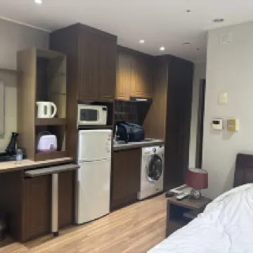 The hotel parking was a bit cramped, which was inconvenient, and the lack of proper service was disappointing. Still, the staff were friendly. The hotel facilities were good for the price, with a microwave, electric kettle, large refrigerator, and washing machine, which was unusual. However, basic amenities like shampoo, soap, and a comb had to be purchased. It was my fault for not doing the research, but I've been to many budget hotels, and I've never experienced anything like this, so I was shocked.