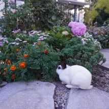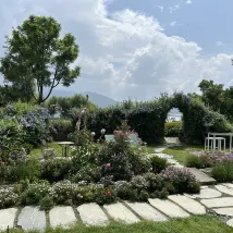 The garden here is so incredibly beautiful. We came from Shuanglang, where many picturesque spots charge for photos, so it was much better to just stay here, haha. You can spend an entire afternoon in the small garden, and there's even a cute little rabbit.