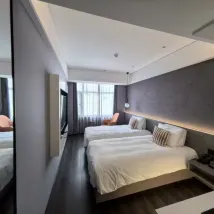 The location is fantastic, right in the city center. There are plenty of dining, shopping, and amenities nearby, and the subway entrance is right next door. The front desk staff were also very warm and welcoming. Breakfast was quite substantial. The room isn't huge, but it has everything you need. What I liked most was that the two beds could be pushed together, which is incredibly important for families with young children – no worries about the kids rolling off the bed!