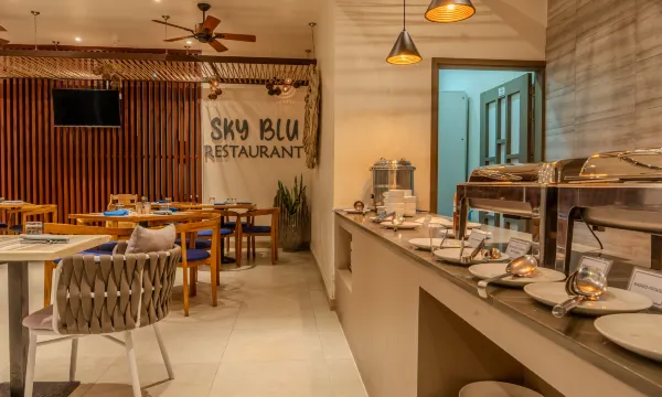 Puaskan selera anda di Sky Blu, sebuah restoran tepi kolam yang menampilkan pamandangan kolam renang. Bertegur sapalah dengan tetamu lain di majlis makan percuma yang diadakan setiap hari. Sarapan Eropah percuma disajikan pada setiap hari dari 7:30 hingga 9:30.