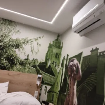 Newly renovated Hotel, air condition working well. Nice and Safe storage Box for bicycles. This is really a plus for this Hotel, If you are on a bicycle Tour.
