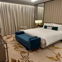 Room Configuration: When checking in, the hotel upgraded me to a higher level suite, which was incredibly big! The suite is spotless, with curtains that open automatically when the door is opened; the room has its own washing machine and dressing room; the bathroom is bright and clean; and the living room is spacious and comfortable. Impeccable.