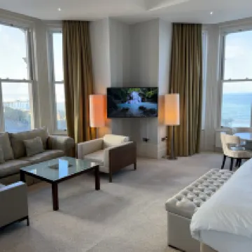 This is the best hotel I've stayed at during my trip to the UK. The location is excellent, and the room offers a beautiful seaside view. We were even lucky enough to admire the supermoon and a stunning sunrise here. Although the hotel has a long history, the facilities are well-maintained and very convenient. The front desk staff were friendly and helpful. The breakfast was plentiful, and the restaurant had a lovely ambiance. It was a fantastic stay, and if I have the chance to visit again, I would definitely choose this place.
