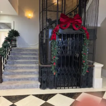 The old-fashioned elevator is very distinctive and has a vintage feel. It's probably one of the better hotels in the town. You can see the sea from the window, so I'd recommend it.