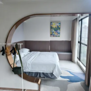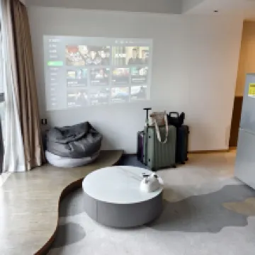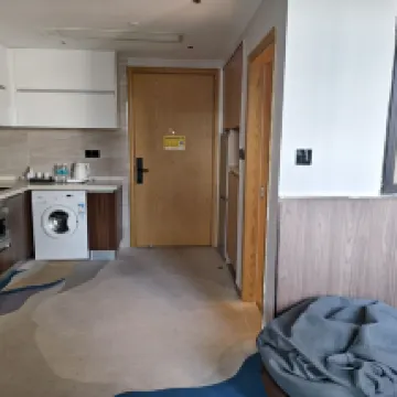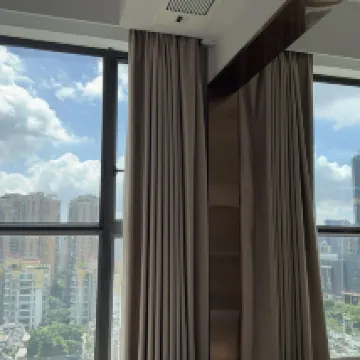 The location is super convenient! It's just a 10-meter walk to the apartment entrance after turning left from Exit C of Kuiqi Road Station on Foshan Metro Line 2. Right next door is the New DNA mall, which has everything you need for dining, entertainment, and shopping. The room environment is really nice, equipped with a fridge, washing machine, microwave, induction cooker, and TV. The electric curtains are very handy, and from the room, you get a panoramic view of the bustling city. The projector in the room works great; you can watch clearly from bed.