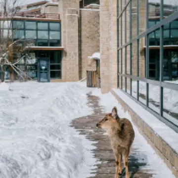 Pullman is a picturesque hotel with beautiful landscape, trees covered in powdery snow look like marshmallow, deers roaming around 😍