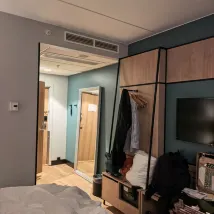 Overall, I was very satisfied with my stay. The room was spotless. I visited during winter, and the underfloor heating was a great bonus. The hotel is conveniently located near the airport, with a direct pedestrian walkway connecting to it, which is about a 10-minute walk.