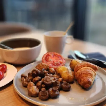 The hotel is less than a 10-minute drive from the airport, and there's also a bus stop right outside with direct service to the airport, which is incredibly convenient. The breakfast spread was quite generous too, but unfortunately, I had to rush for my flight and could only grab a couple of pastries before heading out. The room was well-equipped, and I had a comfortable sleep.