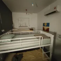 If you want to make shared bathroom pls make sure its clean because all people use the bathroom. The room was okay but you can hear people walking since its made from wood. Got few spider web on the ceiling and the room is quite small for the price. If you want to have a short stay maybe its okay but if you want to have long stay you might find other place that have private bathroom and spacious room to walk around. Its not 24hours receptionist bcs when got back around 2am there’s no one at the counter. Overall the place is okay but please replenish and refurbish furnitures to help customer have a good stay at your hotel TQ