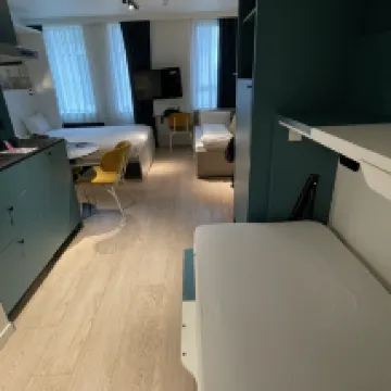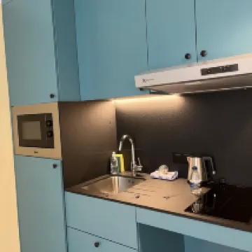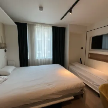 The best hotel we’ve had so far! Room comes with a mini kitchen (fridge, induction cooker, microwave, pans, and utensils). There was even Nespresso machine and pods. The facilities are modem and the place is clean. The staffs are friendly plus you can buy Ghent city card at the counter! You can walk to the old town in about 15 minutes or take the bus which is just a few minutes walk away from the hotel. Highly recommended and will definitely come back here.