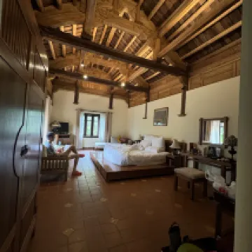 The hotel room is spacious and designed in the style of an old Vietnamese house, featuring plenty of quiet corners perfect for chilling and unwinding. The location is not perfect but it offers unique experience to embrace the nature. Food is amazing, too