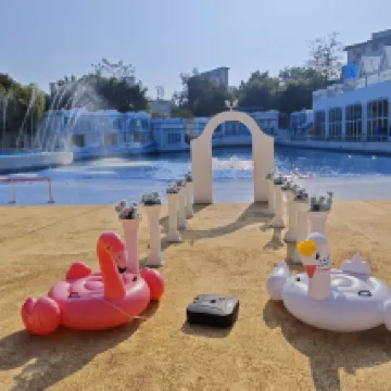 Jawapan daripada Pihak Penginapan: Hello! Thank you for choosing to stay at Santorini Hot Spring Resort during your holiday. The resort covers an area of 23,000 square meters and features over 30 original hot spring pools, a gourmet restaurant, a wave pool, a children's water park, a heated swimming pool, and an infinity heated swimming pool, making it an ideal destination for couples, close friends, and families. We look forward to seeing you again! Guangzhou Santorini Hot Spring Resort