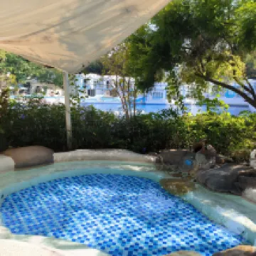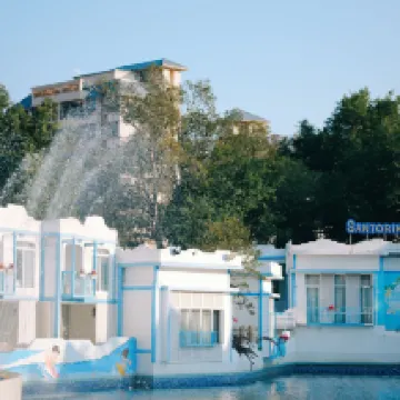 Jawapan daripada Pihak Penginapan: Hello, it's a pleasure to have you enjoying your time at our resort! The resort is designed in the Greek Aegean style and boasts a rare radon-rich baking soda hot spring. The water is crystal clear, colorless, and odorless; regular soaking can promote metabolism and beautify the skin. We look forward to your next visit and wish you a pleasant life! Guangzhou Santorini Hot Spring Resort