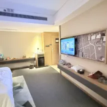 This Hampton by Hilton was in a local-feeling neighborhood. There were many small local restaurants on the road of the hotel. It was about 15 minutes from the main business area of Guiyang. The staff was very friendly and the room was very clean. There was a small issue of the water from the shower room leaking into the toilet room, but other than that it was ok. The on-demand entertainment on the TV was a little outdated (as far as Western movies are concerned) but we were out of the hotel most of the time anyway. The breakfast at the hotel was decent, a good variety for different diets. The view from our hotel room had some city and mountain, a really interesting perspective of Guiyang.