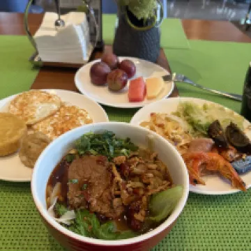 Service: Excellent. Any requests were promptly met. I especially loved being able to sleep in and then eat, and the thoughtful option to pack food for takeaway was a big plus! Overall: Highly recommended!