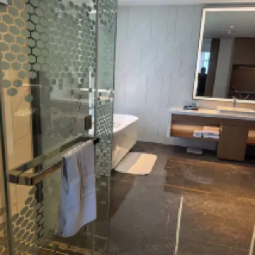 The hotel upgraded us to a deluxe suite. The room was spacious and well-appointed, featuring two bathrooms, which was incredibly convenient. The breakfast offered both Chinese and Western options, catering well to our needs. The mini-bar was stocked with a variety of complimentary drinks, fresh fruit was delivered daily, and an ample supply of bottled water was also available. The hotel is conveniently located, with numerous dining options nearby, offering plenty of choices. Overall, it was a highly satisfying stay.