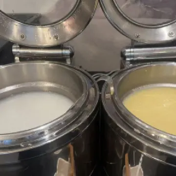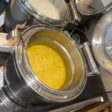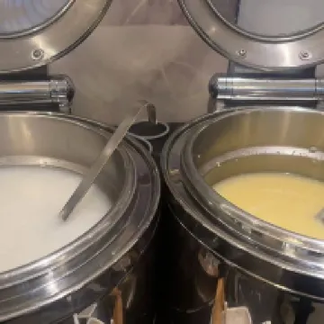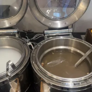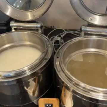 The table spacing in the breakfast area was truly fantastic! There was ample room between each table, so it never felt crowded or cramped. This allowed us to have quiet conversations with friends without worrying about disturbing or being disturbed by neighboring tables. Even after finishing breakfast, we could leisurely linger, enjoying refills of hot tea while basking in the morning sun and continuing our chats. This unhurried and relaxed atmosphere made our mornings exceptionally comfortable.