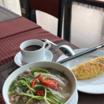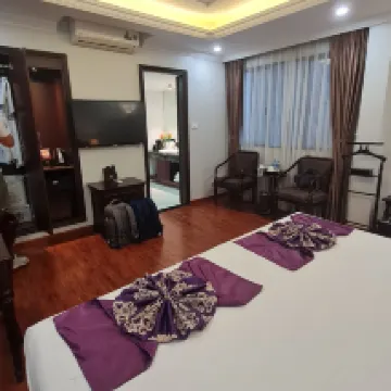 Before my trip to Vietnam, booking a hotel was my biggest headache. After searching for days, I decided to give this one a try. I never look at the good reviews, only the bad ones! When I arrived in Hanoi (I took the international train from Nanning), I used the Vietnamese ride-hailing app Grab. Just a note, the hotel is not 1.5 km from the train station; it's actually 6 km. This app is incredibly user-friendly and doesn't overcharge. You can even pay in RMB via Alipay. I arrived in Hanoi at 6:30 AM and took a Grab to the hotel. International hotels usually have a 2 PM check-in, but since I arrived so early, I re-booked my stay to include the hours from 6 AM to 12 PM, which was charged at 100%. They kindly offered complimentary breakfast for two. After breakfast, I rested for a bit and then checked out at 12 PM. I waited about 30 minutes for my room to be ready. There's no Chinese service at the front desk, so I used Google Translate. The male and female receptionists were incredibly friendly and attentive. They didn't ask for a deposit or my passport and even escorted me up to my room. It was much better than I expected! The room had three glass walls and a balcony. Although the hotel is a bit old, it still retains its charm. I have pictures of the room. The hotel is conveniently located, just 1 to 2 km from various attractions, a 20-minute walk away. The breakfast selection wasn't huge, but the staff was very welcoming. Fried eggs and Vietnamese pho were enough for me, and there was also meat, fruit, and good quality milk (though the coffee wasn't freshly ground and there weren't many vegetables). On a side note, booking a car through Ctrip was very reasonably priced. I paid 55 RMB for a 30 km ride to the airport. I booked a 4-seater, but they upgraded me to a 7-seater at no extra charge.