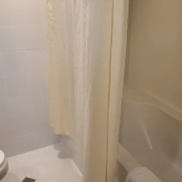 The bathroom has a bathtub instead of a shower, and the water pressure is quite good.