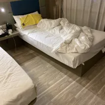 I liked the hotel very much. Good location, bus stops of different routes nearby. There are many cafes and a very good supermarket nearby, where you can buy a lot of things. Cozy room, big bed, everything you need (slippers, kettle, water), except for the refrigerator. Breakfasts are good, buffet.
