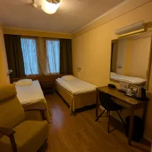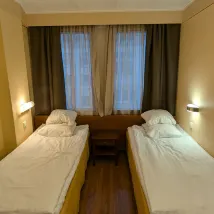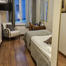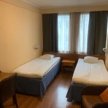 Cosy, spacious twin room. Semi-modern decor. Typical Finnish type rooms with double doors. Spacious bathroom, albeit wardrobe is a little small. Wide spread of variety for included breakfast. Right next to city center, perfect accessibility to many attractions and transportation