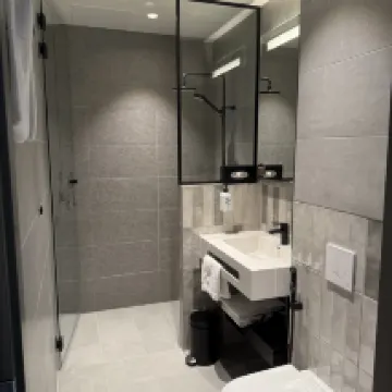 Directly opposite the hotel is a small, quiet park. The location is excellent, being very close to the city center, port, and subway, which makes getting around incredibly convenient. There's also a great coffee shop just a short walk downstairs. Overall, I really liked my stay. The only minor point is that there was no kettle in the room for boiling water, and I had to ask for one. I'd suggest the hotel consider proactively providing kettles, especially for Asian guests, and Chinese visitors in particular, as it's a common preference.