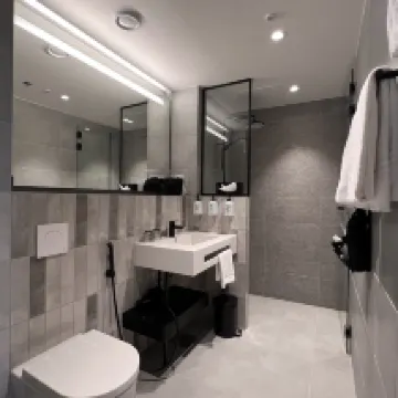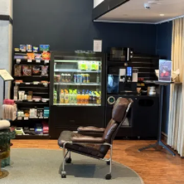 Receptionists are friendly and helpful. Room design is great. Spacious. Great variety in breakfast buffet. Nice sauna and gym.