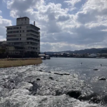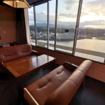 This is an older hotel with a beautiful riverside view. Coffee, tea, and cookies are provided. It also has a large public bath, which is nice. My room had tatami mats. It was dusty, and there was hair on the bed and in the bathroom. There were also fingernail clippings on the table. The staff were friendly. If they could renovate, it would be a great hotel. Thank you.