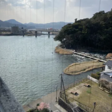Right by the river, the scenery was absolutely beautiful. Hita is lovely, and I caught a stunning sunset. The environment was very quiet, the hotel had coffee, and they were playing Beatles music. The foot massage was great, especially with the river view. The front desk staff were very friendly, and I would definitely stay here again next time I'm in Hita!