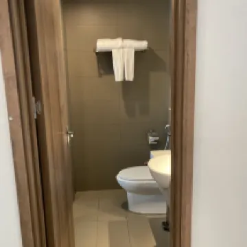 The reception staff is very good. The uncle security guard helps carry things all the time. The room is spacious, clean, and has complete facilities. The location is near the airport, less than 10 minutes away. There are restaurants and coffee shops in front of the hotel entrance. Everything is great.