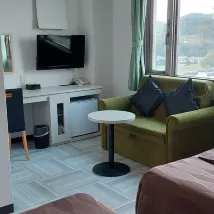 Nice view of beach from room window Both beds & pillows were not comfortable. Bed was too hard. Restaurant was not open. Receptionist was not able to communicate in English or recommend any food nearby.