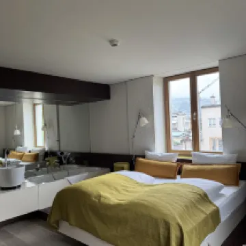 a total unique stay! we been placed to the largest room according to the receptionist, room was super spacious for family of 3, tho a bit off point was we were hoping for a little bit more privacy for the bathroom but other than that it was all good. hotel even provided innsbruck welcome card which covered us the main transport in innsbruck. awesome stay overall !