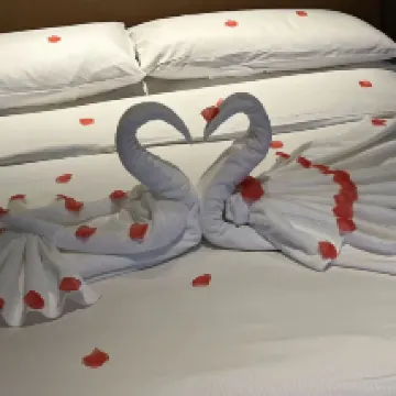 The hotel's location is excellent, with plenty of great restaurants nearby and close proximity to Wanda Plaza. A special shout-out to Sunny for her incredibly attentive service; knowing it was our anniversary, she proactively decorated our room and even upgraded our room type. The view was absolutely stunning, and the room's atmosphere was simply magical as the sun set!