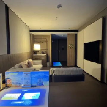 The service at Aria Tiki is excellent, truly reflecting Hilton's trusted standards. Facilities: The amenities are truly impressive; the pool, restaurant, and rooms are all fantastic. I especially loved the robot delivery service for takeout. Location: The hotel is conveniently located near Wanda Plaza, offering pleasant views. Linggongtang Theme Park and the Oriental Geological Museum are also nearby.