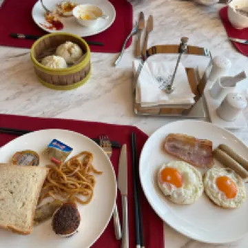 A huge thanks to Jing at the front desk – actually, the entire front desk team was fantastic and very friendly. The hotel lobby is absolutely stunning, it really impressed me. The location is excellent, and the facilities are great too. My only disappointment was the breakfast on the second floor. The decor felt so old and outdated, I almost thought I'd walked into a different establishment, like a guest house. The food itself was also very mediocre, which was a shame.