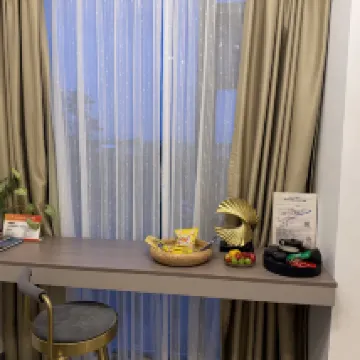 I booked this guesthouse randomly and was so pleasantly surprised! The room was exactly like the pictures, even more exquisite in person. The custom furniture had a unique charm, and the tranquil view outside the window made sitting on the balcony with the breeze incredibly relaxing. The cleanliness was exceptional; I couldn't find a speck of dust on the tables or even in the window sills. The sheets and duvet covers were spotless, and the mattress had just the right amount of support, perfect for a good night's sleep after a long day of sightseeing. The soundproofing was excellent, and the double blackout curtains ensured a perfect night's rest. The air conditioning cooled quickly and silently. The staff were incredibly friendly; they not only prepared welcome snacks but also thoughtfully provided travel tips. The location is about a ten-minute walk from the main attractions, with restaurants and small shops nearby, making it convenient for both getting around and shopping. It's absolutely perfect for couples or solo travelers – a true hidden gem of a guesthouse, highly recommended!