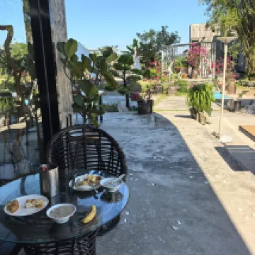 The B&B is in a nice, quiet neighborhood. The garden-style design shows that the owner is someone who loves life and meticulously maintains the place, keeping it clean. The rooms are tasteful and well-appointed, even offering small snacks. A special shout-out to the breakfast – the pastries are exquisite and perfectly seasoned, and you can try several local Kaiping rice cakes, all generously filled. The home-cooked dishes are large portions and delicious too, highly recommended. I'll definitely visit again.