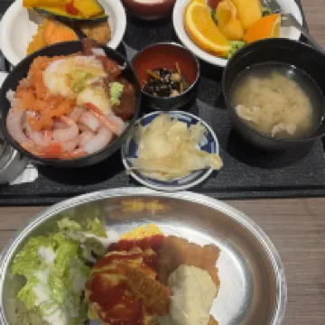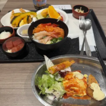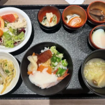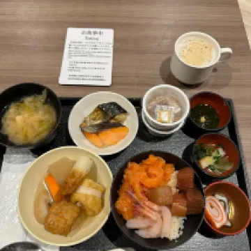 This is a chain hotel, and although it's a bit older, it's well-maintained. I tried the breakfast that my friend highly recommended, and the ingredients were fresh – it was indeed good. They also offer free ramen at their late-night dining service.