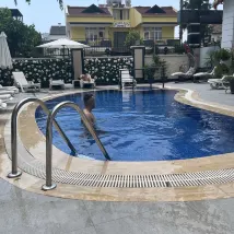 The hotel is small, cozy, 5-10 minutes from the beach, the center is nearby. Breakfast is excellent, buffet, fruit: strawberries, cherries, apricots, apples, watermelons, melon. We have been to several boutique hotels in Turkey, and have never seen such a rich breakfast, much less such a variety of fruit. There are a variety of teas in jars, you can brew them yourself, whatever you want. Room: clean and comfortable, bottled drinking water, safe. Swimming pool, swam once, we are usually not fans of swimming in pools. It was hot that day, we were coming from the sea and decided to cool off in the pool again. In the pool, the stairs are wobbly and there are no rubber coverings on the steps, I slipped and fell on my tailbone. Be careful! I told about the problem, they immediately began to fix it, I also told about the rubber insoles, we’ll see if they solve this problem or not. Please fix the stairs please! But overall the hotel is good. Excellent staff, courteous, they speak Russian at the reception and in the restaurant, there were no problems with that. If you are in those parts, stop by, you won’t regret it.