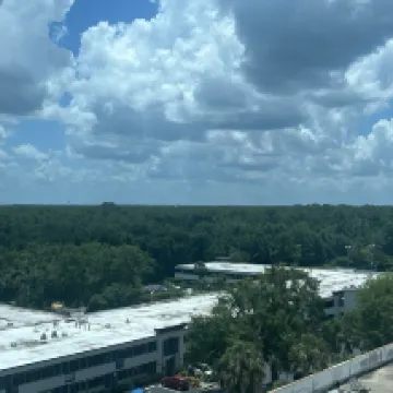 The hotel is very convenient and easy to access. The room was spacious and came with good amenities. Parking is free and there are plenty of parking spaces available, which was very convenient. Breakfast is not included, but the hotel is close to many restaurants and very near Disney resorts, making transportation easy.
